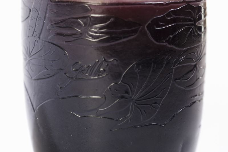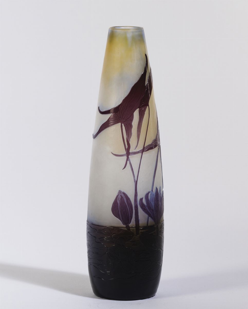 Vaso a goccia in vetro a cammeo con decoro acquatico di ninfee.