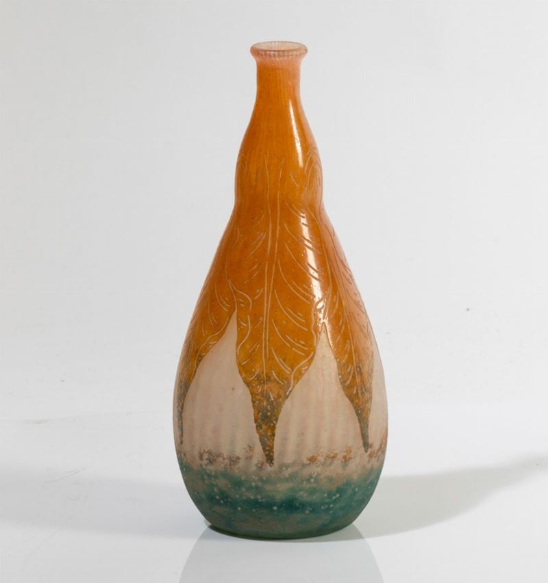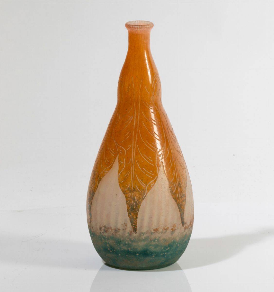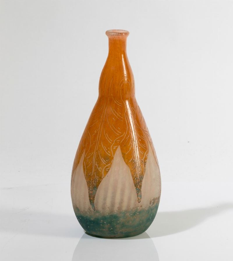 Vaso a pera con decoro floreale stilizzato a cammeo.