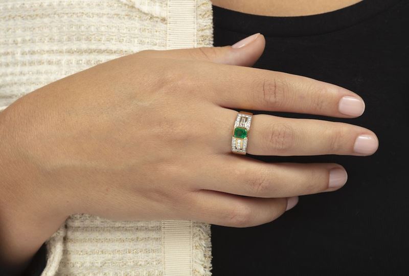 Emerald and diamond ring. Signed Garaffo. Fitted case