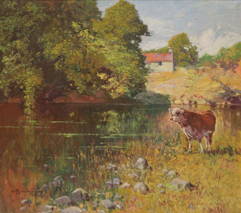 Cesare Bentivoglio (Genova 1868-1952) Mucca al pascolo