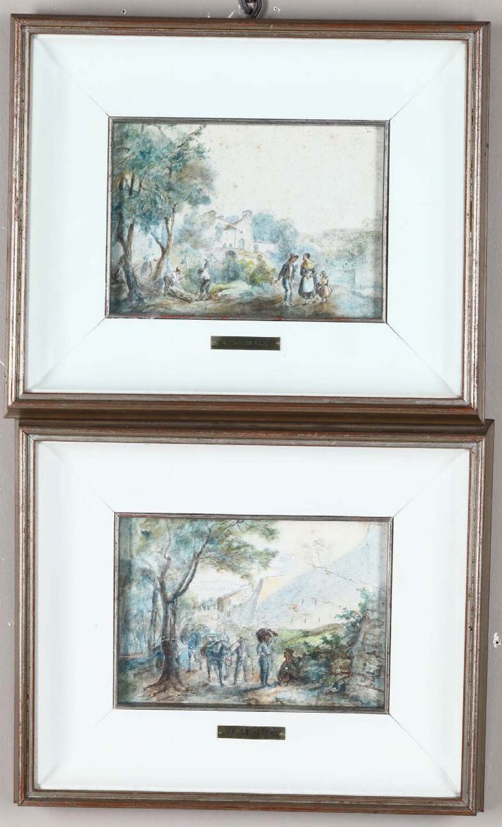 Lotto di 4 acquerelli su carta raffiguranti paesaggi, XVIII-XIX