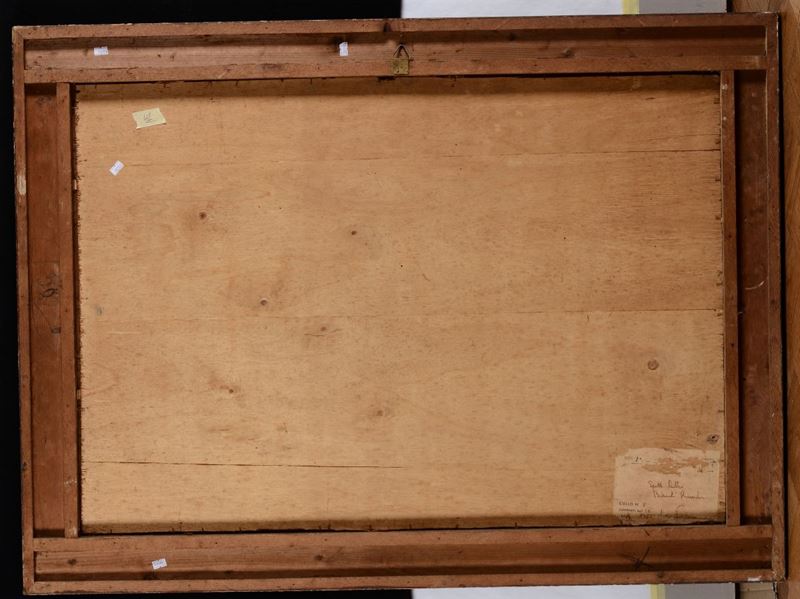 olio su tavoletta, cm 70x100, firmato in basso a destra. Al retro vecchia etichetta cartacea