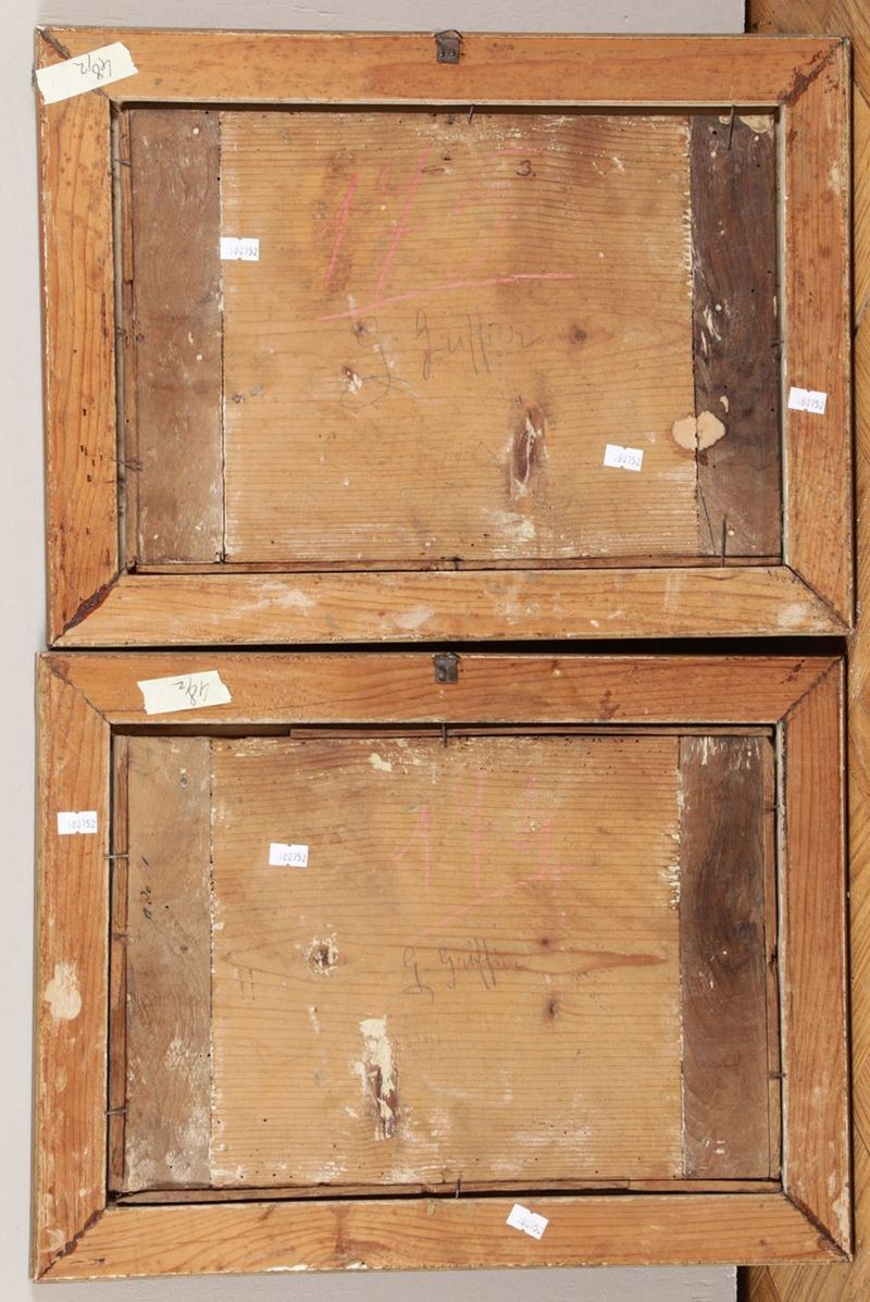 coppia di dipinti ad olio su tavola, cm 26x38
