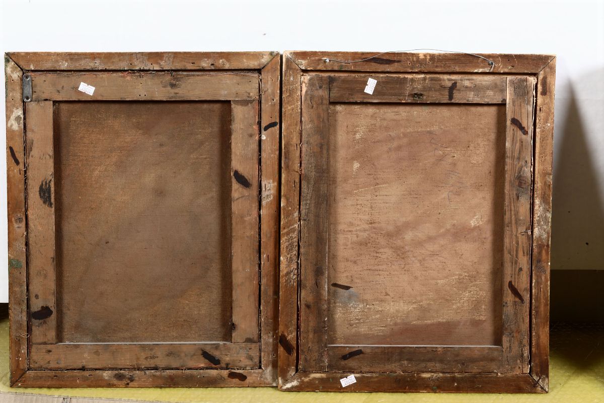 coppia di dipinti ad olio su tela, cm 41,5x32