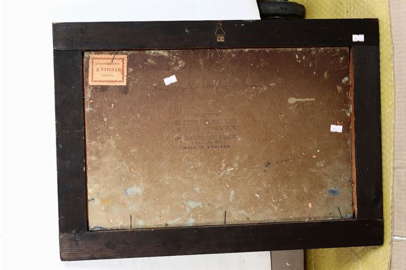 olio su cartone, cm 30,5 x 46,5, firmato in basso a sinistra, sul retro: titolo, firma e timbro della Galleria Vitelli di Genova