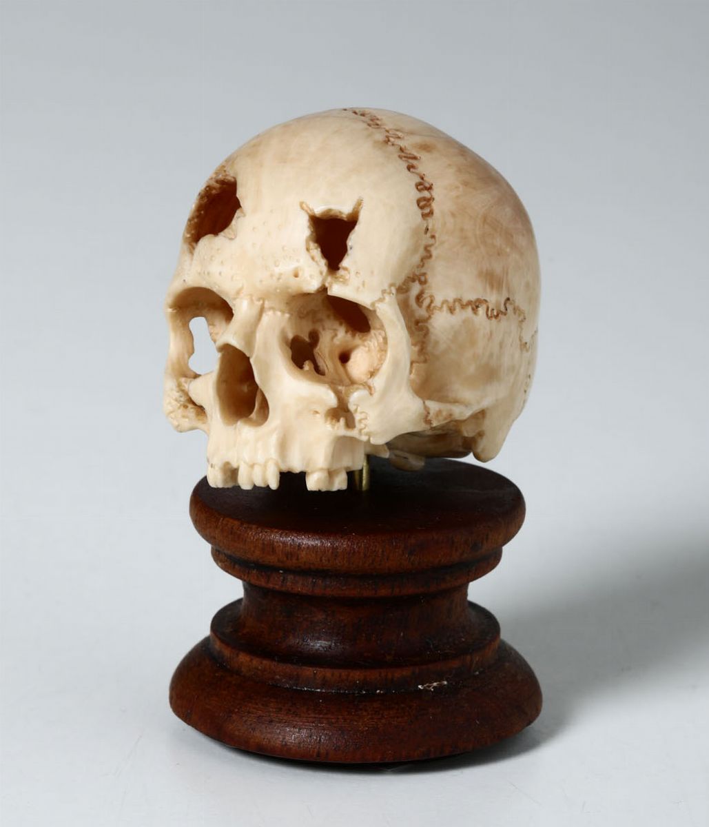 Memento Mori a foggia di teschio in avorio scolpito probabile XIX-XX secolo