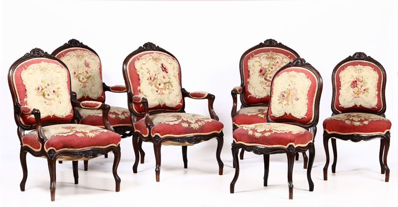 Salotto Luigi Filippo in legno intagliato, XIX secolo
