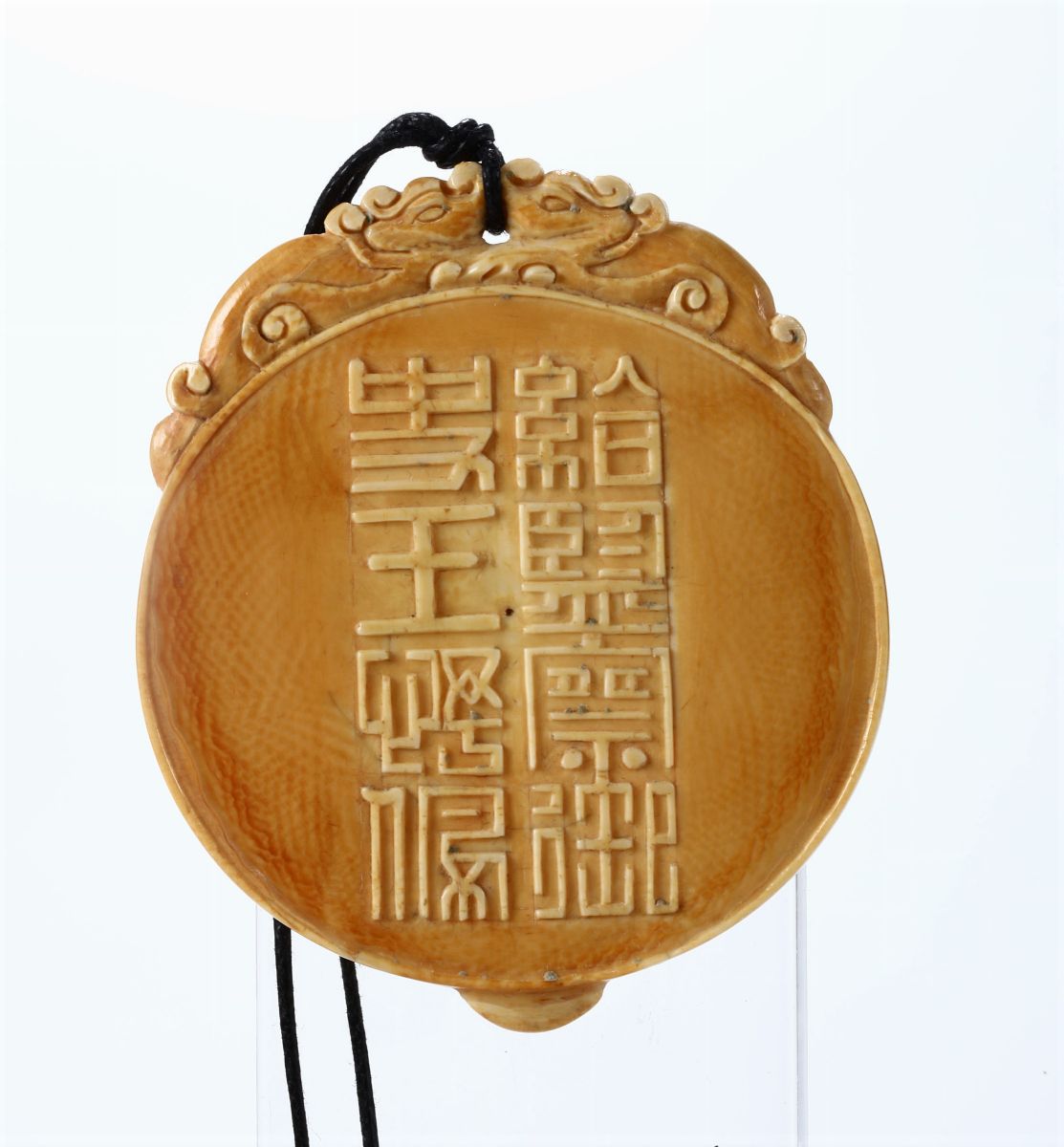 Pendente in avorio con fenici e iscrizione, Cina, inizi XX secolo
