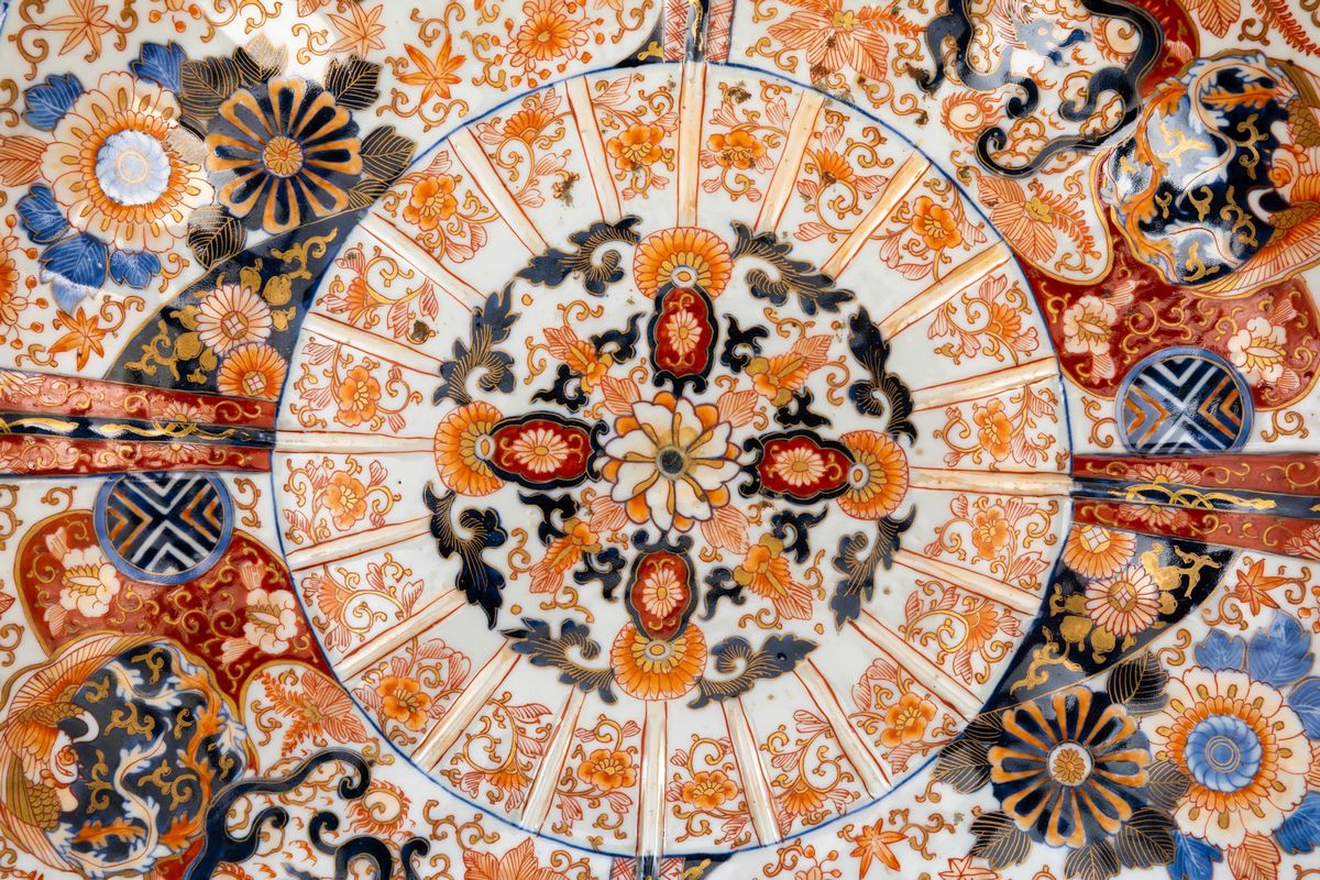 Piatto in porcellana Imari con decoro floreale entro riserve, Giappone, periodo Meiji, fine XIX secolo