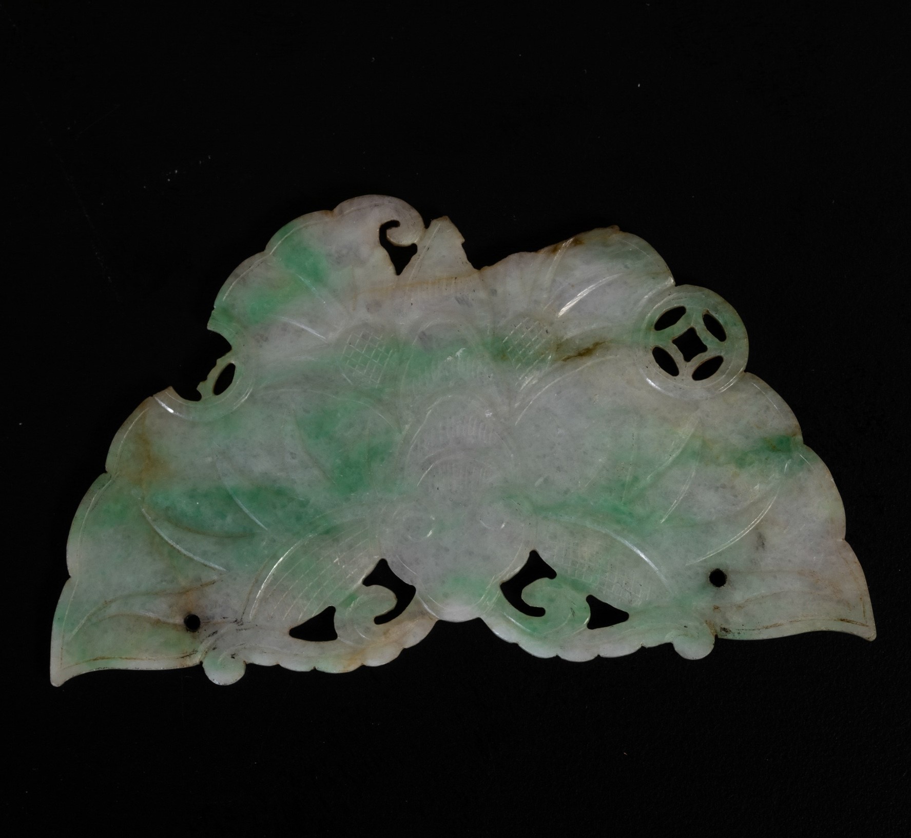 Placca in giadeite a foggia di farfalla con decoro inciso e a traforo, Cina, XX secolo