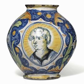Maiolica. Altezza cm 25. Conservazione: qualche sbeccatura ai bordi