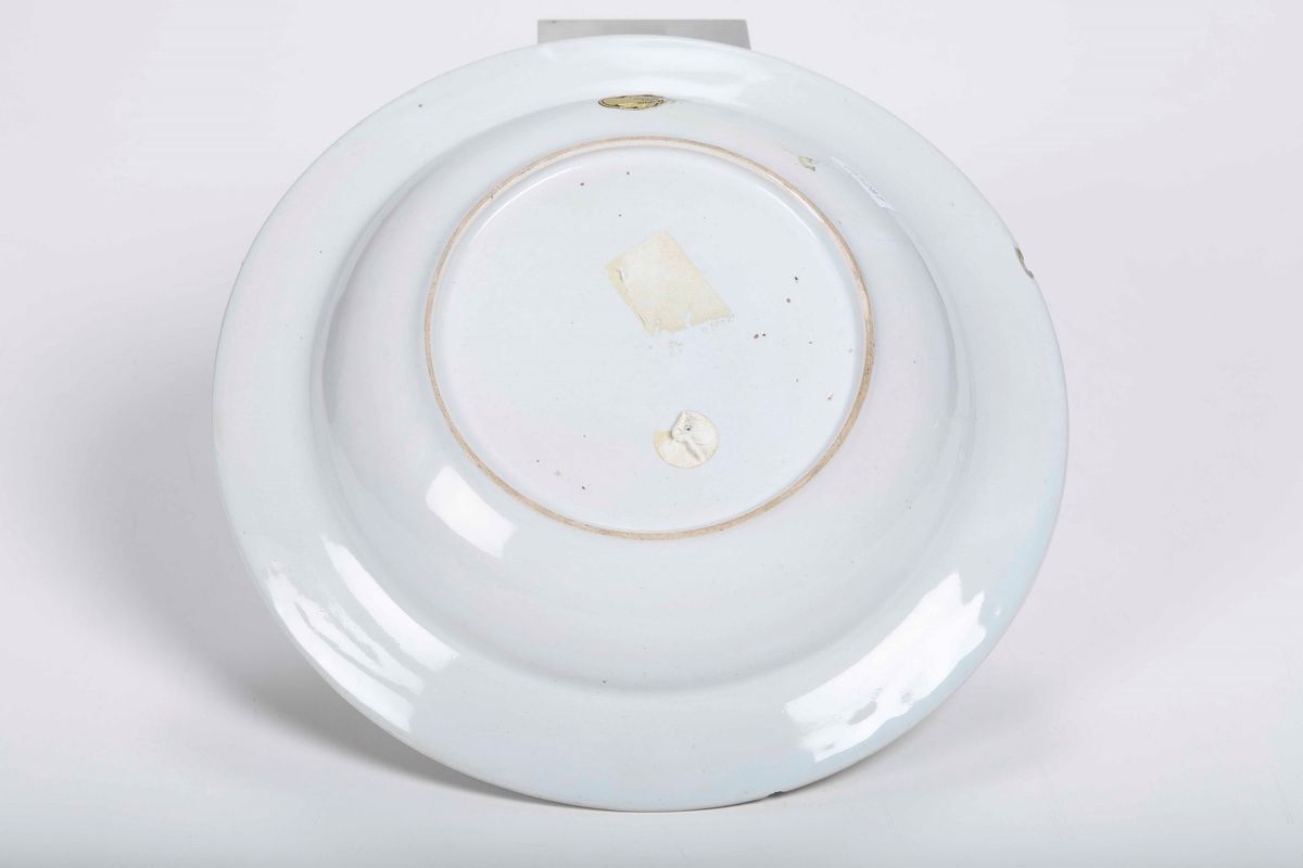 Piatto fondo, in maiolica fina, a parete sottile, è decorato con un motivo floreale d’ispirazione orientale, chiamato Imari cinese, disegnato in blu a gran fuoco e colorato con campiture rosse e oro. Questa formula decorativa, di grandissimo successo, è stata tipica della produzione delle due manifattura milanesi del Settecento: quella di Felice Clerici e di Pasquale Rubati. Quest’ultima con maggiore finezza di segno