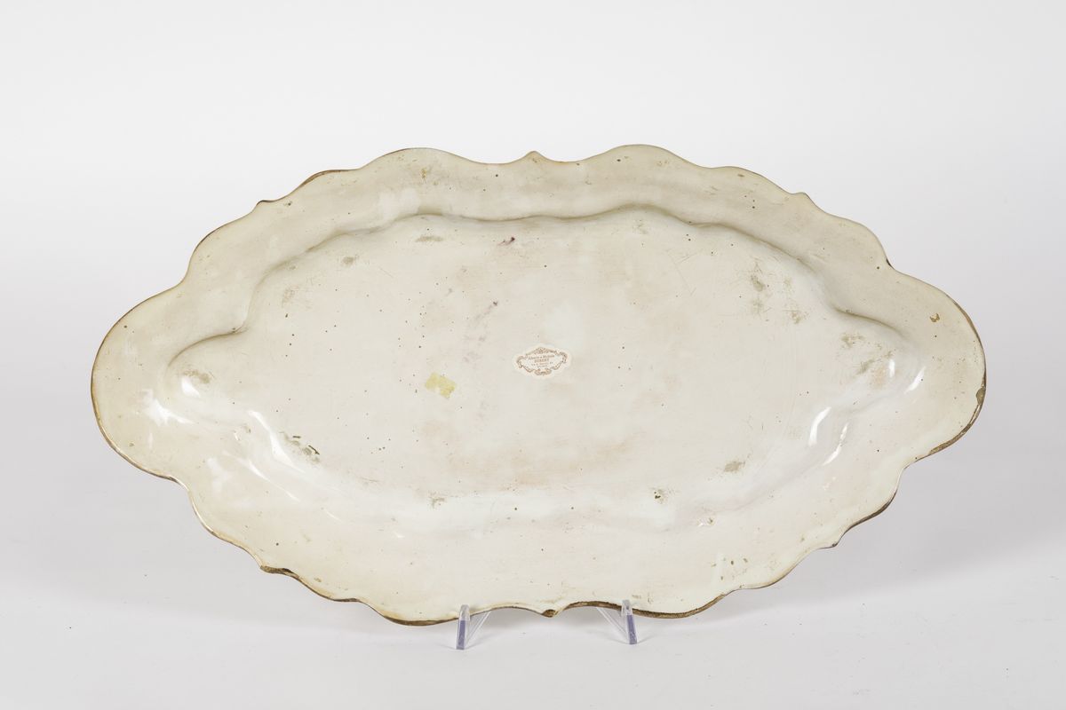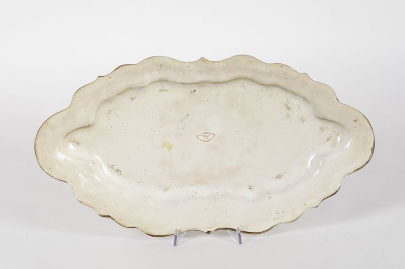 Maiolica policroma a gran fuoco. Marca: assente. Dimensioni: cm 57 x 32,5. Conservazione: ottima; insignificante sbeccatura al bordo