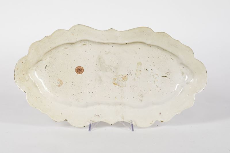 Maiolica policroma a gran fuoco. Marca: assente. Dimensioni: cm 48,5 x 27,5. Conservazione: ottima; qualche piccola sbeccatura al bordo