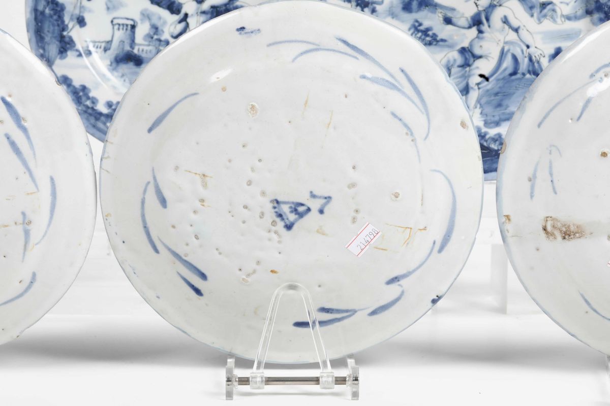 Sei piatti Savona, Manifattura Veneziano, prima metà del XVIII secolo