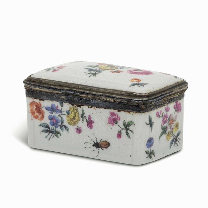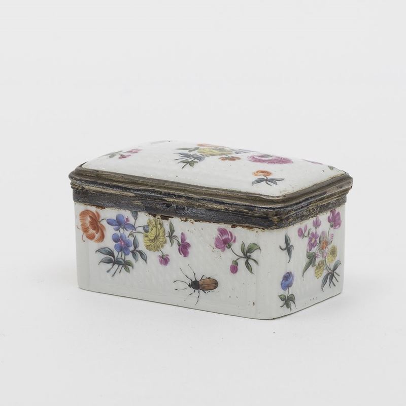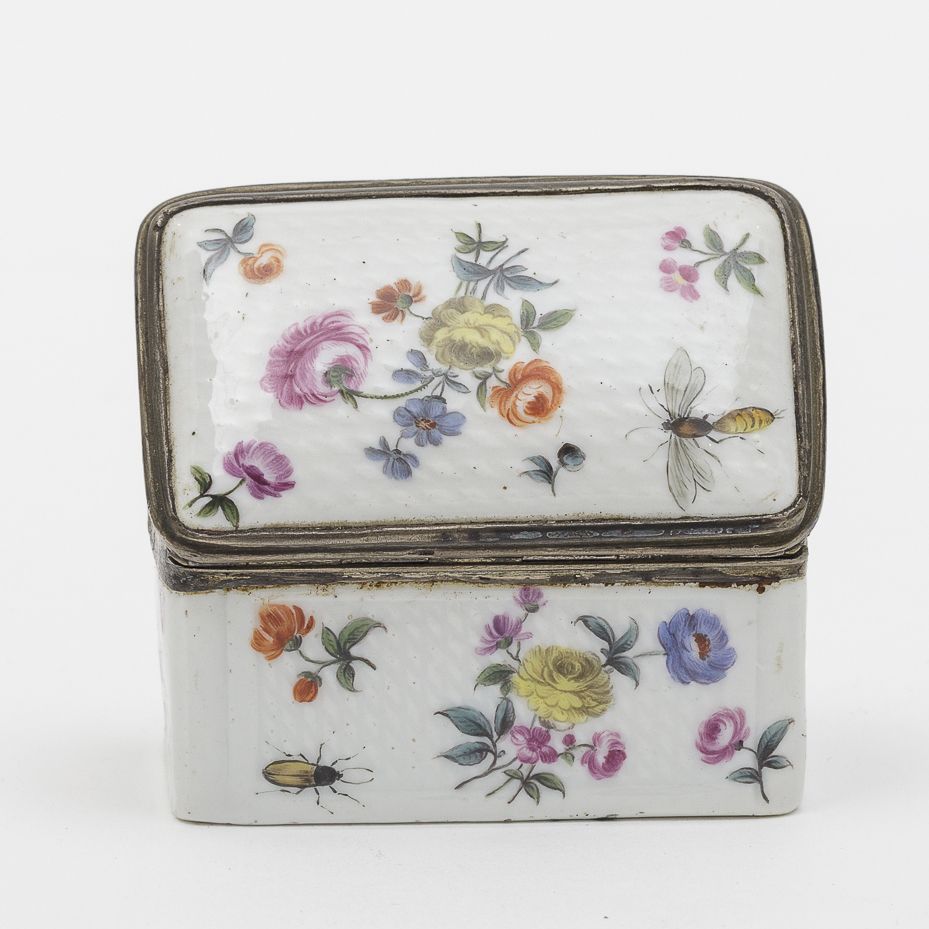 Il modello rettangolare ad angoli smussati fu una delle prime forme di tabacchiere in porcellana utilizzate a Meissen già attorno al 1725-30.