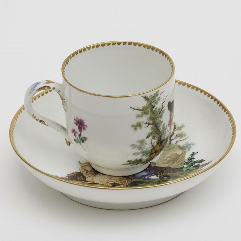 Tazza con piattino Meissen, 1770 circa Pittura di Johann Carl Mauksch (1754-1821)