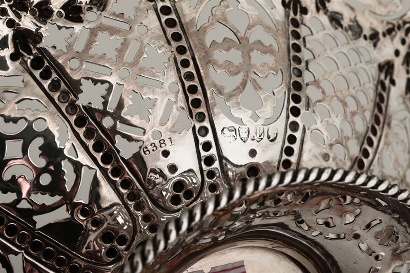 Molten, embossed and perforated silver. 600gr, diam 26cm