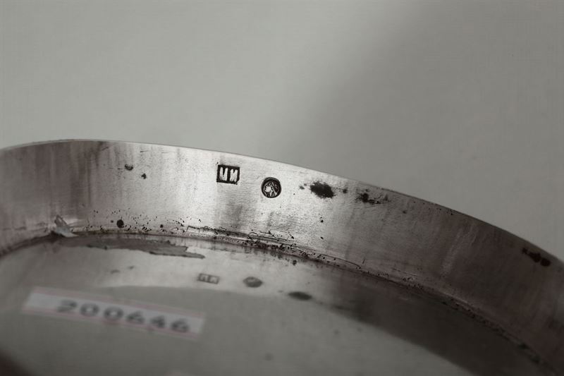 Molten, embossed and chiselled silver. 20x16cm, 350gr