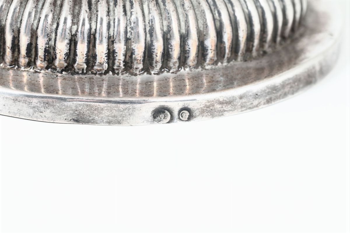 Molten, embossed and chiselled silver, h cm 21.5, diam. cm 11.5