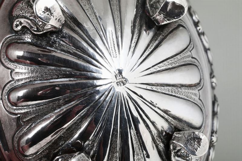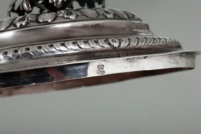 Molten, embossed, chiselled silver and engraved silver. Torretta stamp