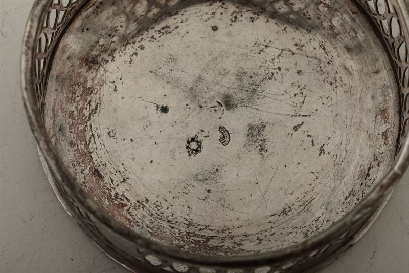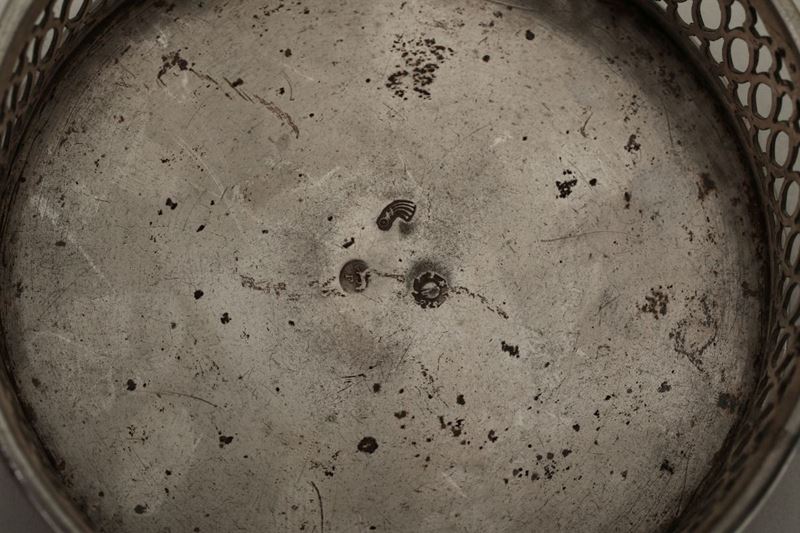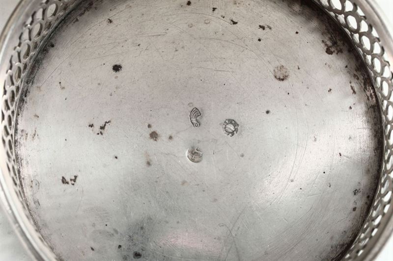 Molten and perforated silver. Title guarantee marks, territorial marks and mark for silversmith Fantini Giovanni (...1811...). 8x3cm, 560gr