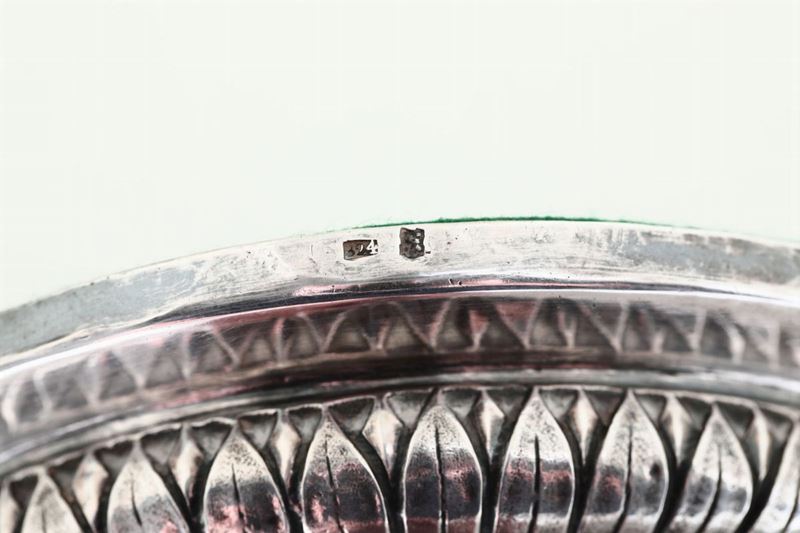 Molten, embossed and chiselled silver. H 28cm
