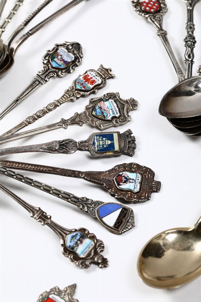 Coloured enamels depicting Italian and foreign city crests. Total weight 1290gr