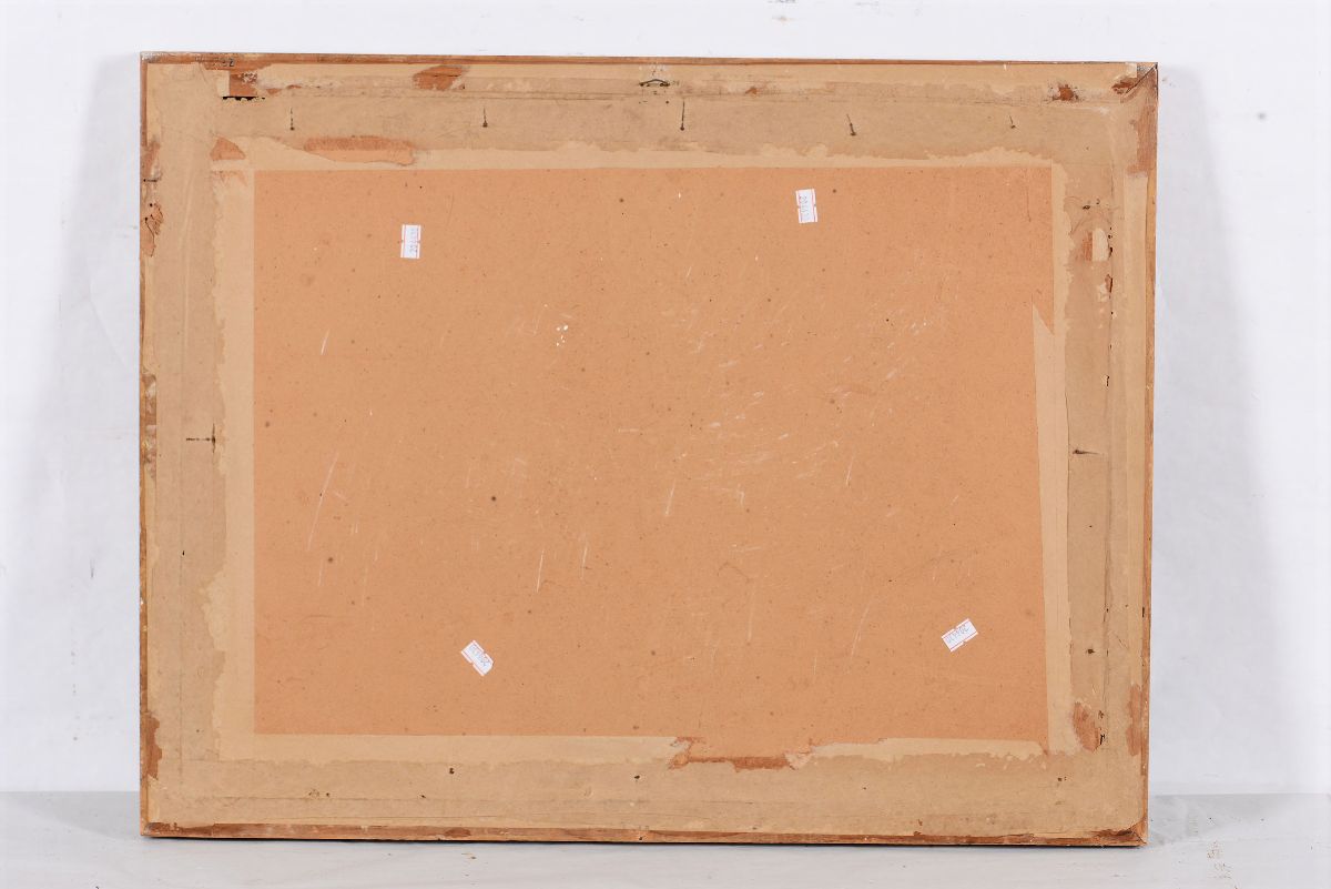 acquerello su carta cm 41,5x53. Firmato e datato in basso a sinistra “Domenico Gavarrone Genova lì 29 Marzo 1862”, in basso “Tempesta sofferta dal Brig.o Fama la notte del g.no 8 gen.o 1862 nel passo di Andro, e Capo d’Oro, nella quale/ perdè quasi tutte le vele, e sarebbe naufragato unitamente all’equipaggio, se l’intercessione di N.S. del Monte/Allegro non le avesse prestato il suo soccorso- Ed il secondo Giuseppe Mignone a memoria di ciò questo quadro gli dedica”