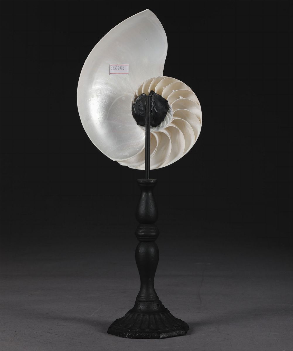 Nautilus su base in legno tornito ed ebanizzato
