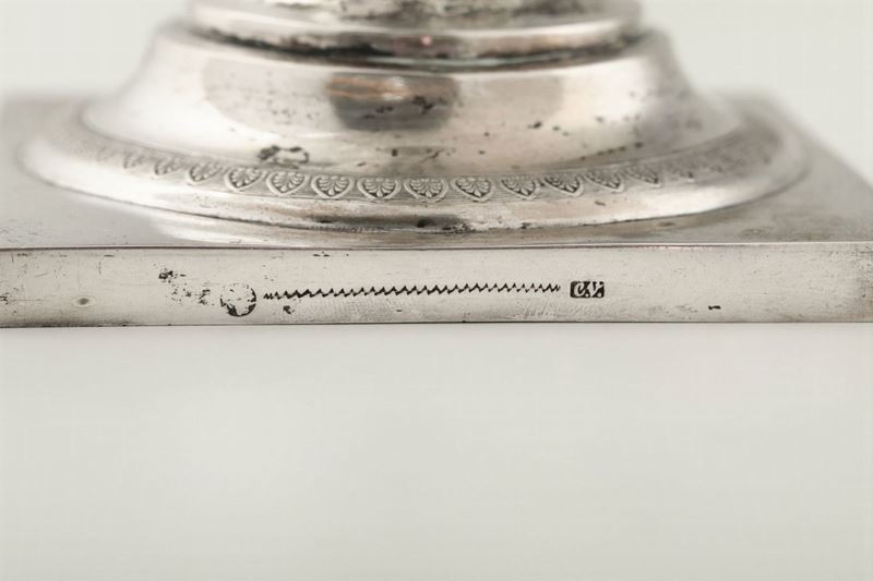 Molten, embossed and chiselled silver. 400gr, H 27cm
