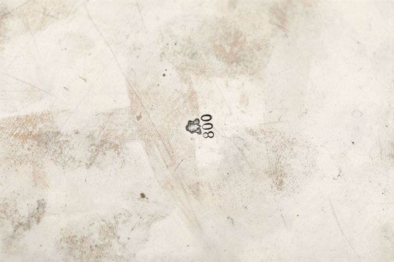 Molten and chiselled silver. 840gr, diam 25cm, H 21.5cm