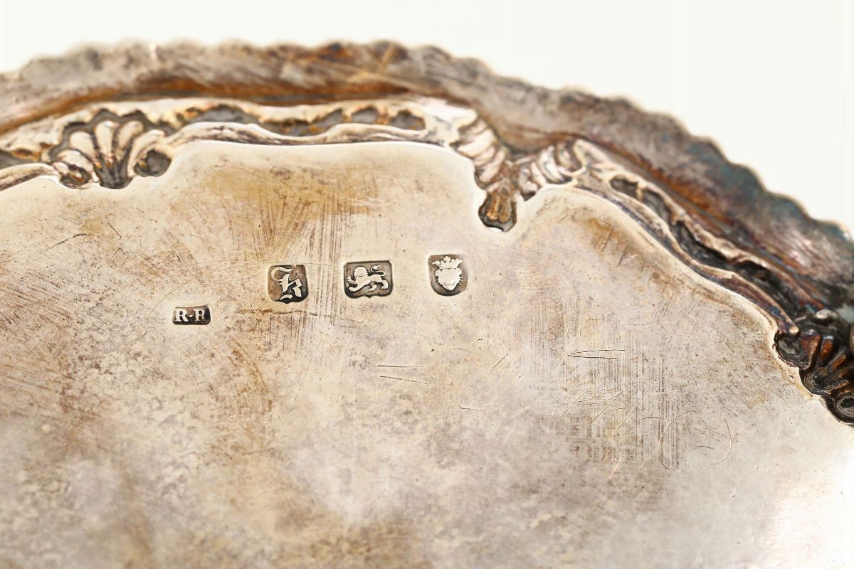 Molten, embossed and chiselled sterling silver. Silversmith Robert Rew or Richard Rugg. diam 20cm, 325gr