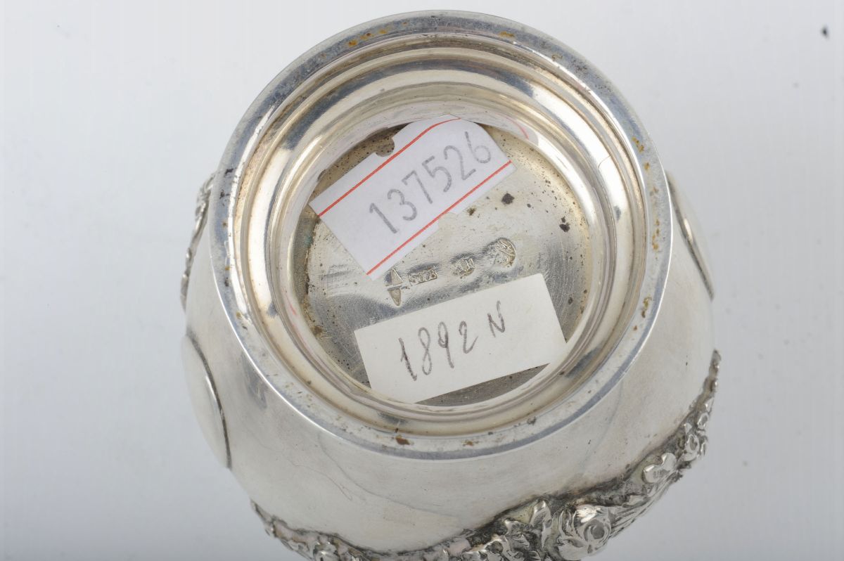 An embossed and chiselled silver sugar spreader, Norway 1892