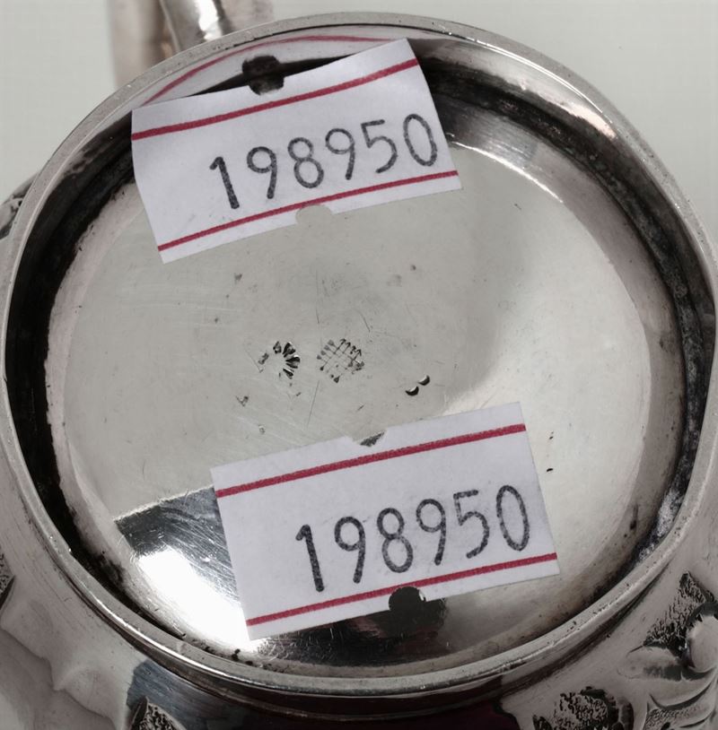 Boccale in argento fuso e cesellato. Bollo della città di Londra 1902 e dell’argentiere (non identificato)