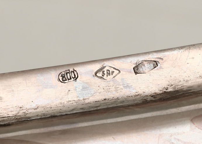 Bugia in argento fuso e cesellato. Argenteria italiana del XX secolo. Argentiere Galli, Firenze