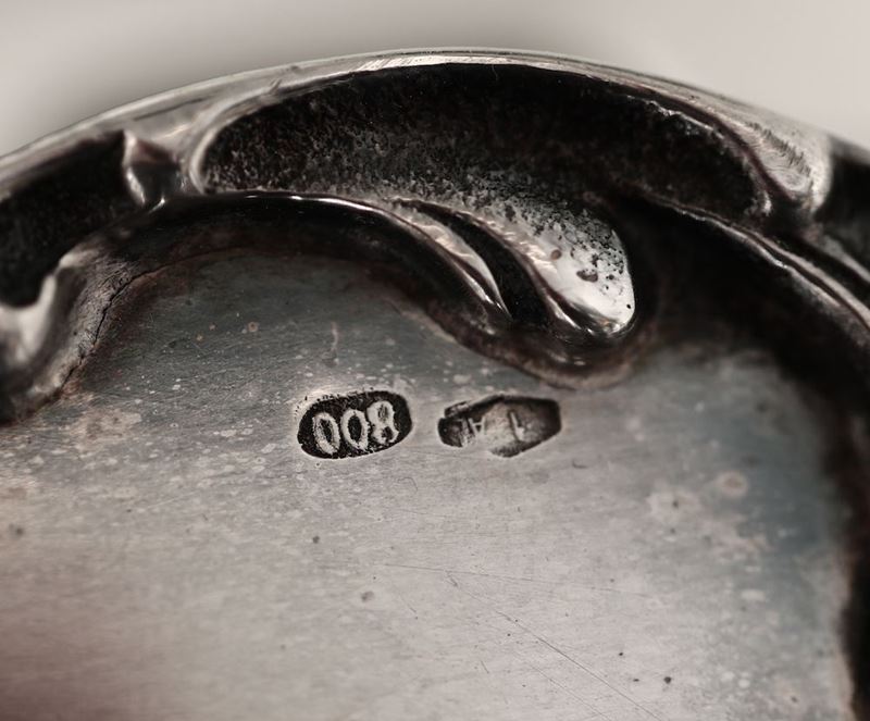 Centrotavola e sei piattini in argento, manifatture Italiane del XX secolo, argentieri differenti