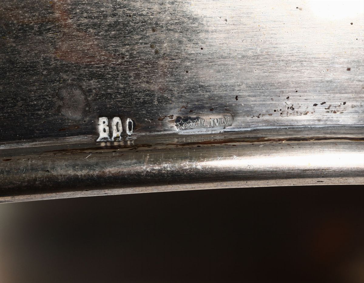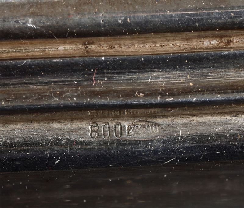 Lotto composto da vassoio rettangolare, vassoio rotondo, portagrissini e ciotola in argento