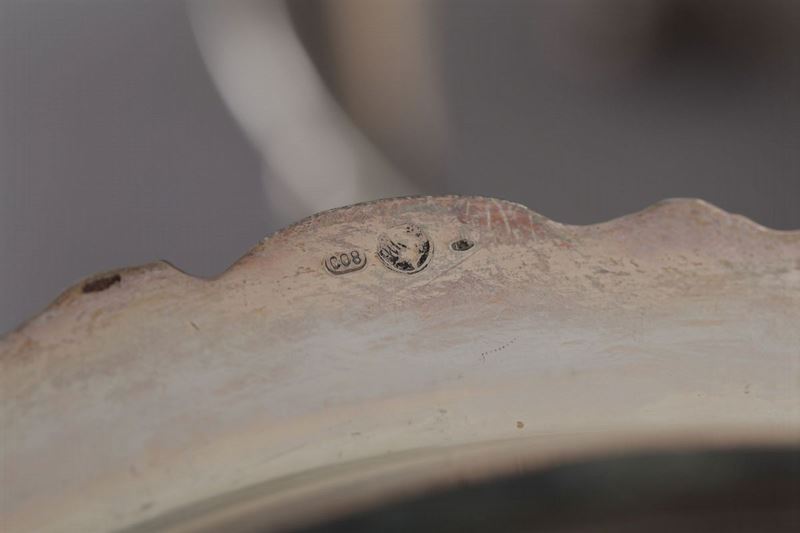 Scaldavivande in argento con coperchio a presa cesellata a frutto. Manifattura italiana del XX secolo