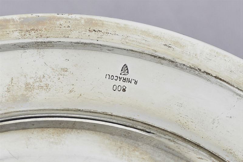 Sei piattini e vassoio in argento. Argenteria italiana del XX secolo. Argentiere Miracoli, Milano