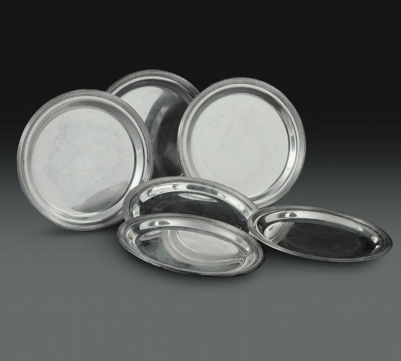 Sei piattini in argento. Argenteria italiana del XX secolo