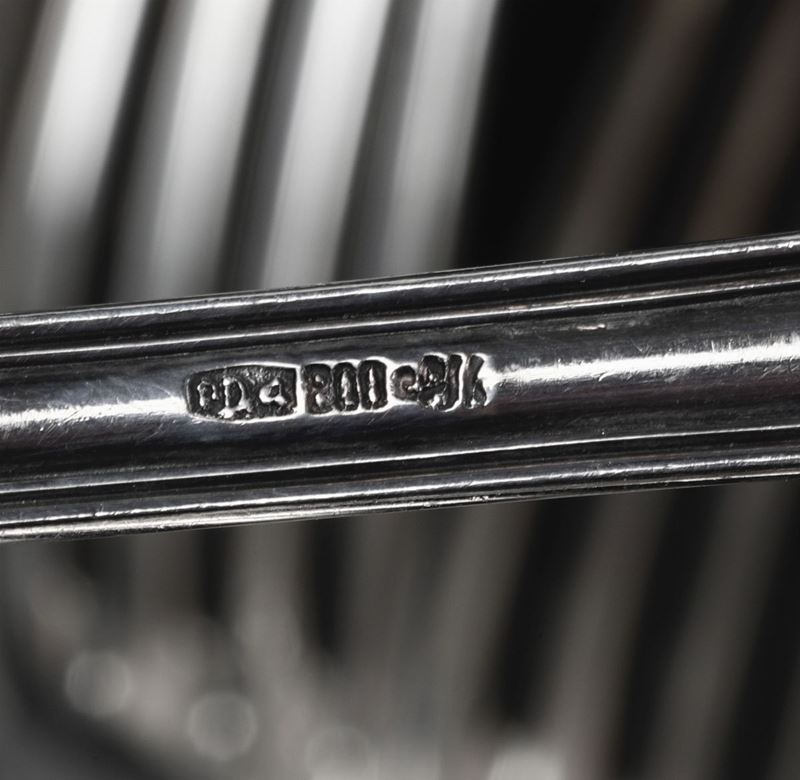 Servizio di posate in argento da sei persone. Manifattura italiana del XX secolo