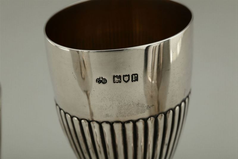 Molten and chiselled silver. Two with stamps for the city of London, one for the city of Chester. H 17cm