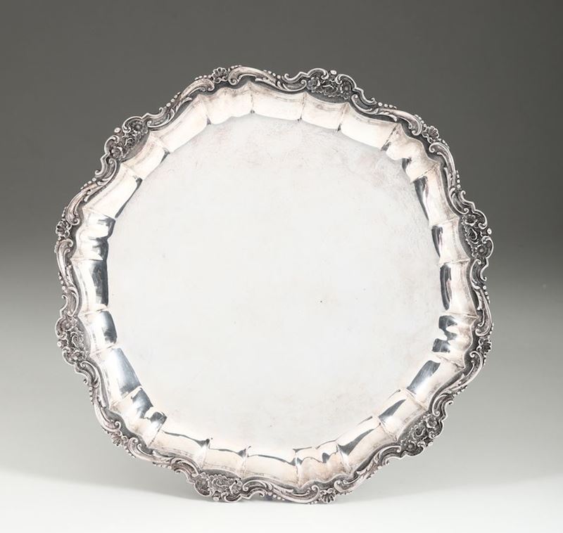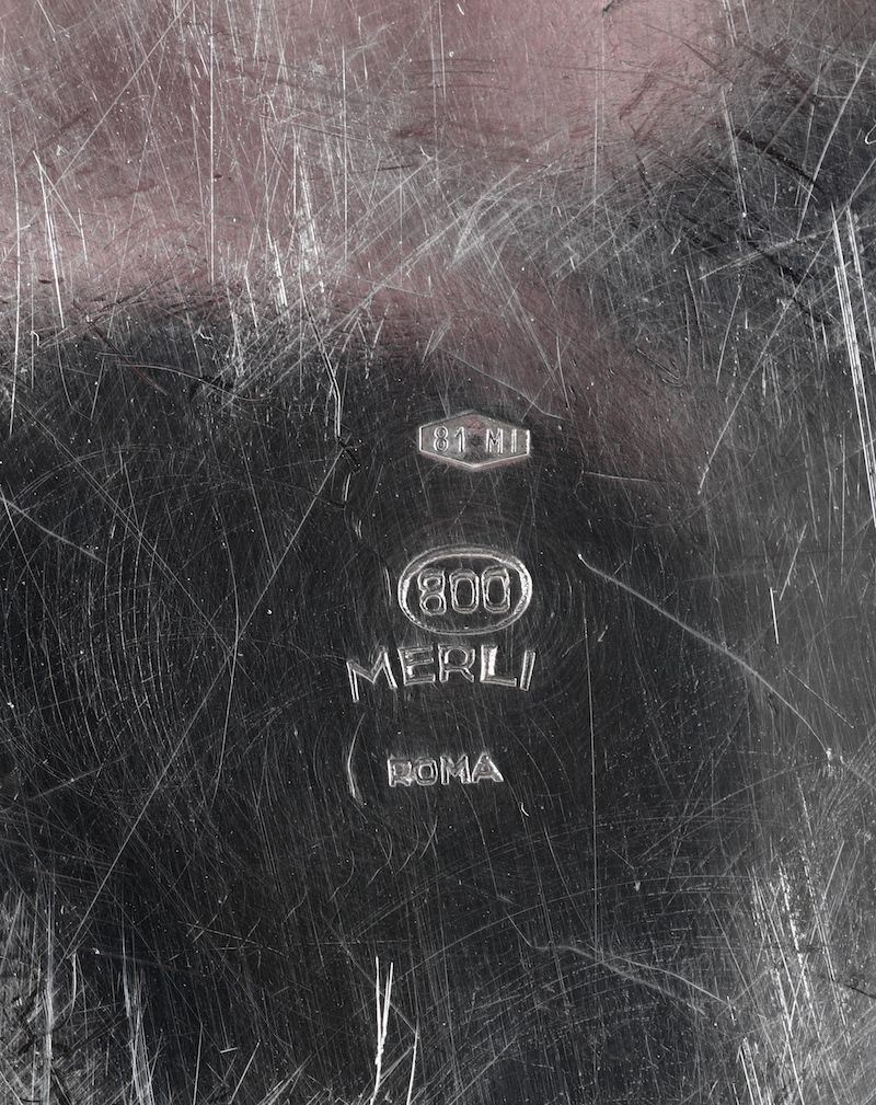 Vassoio circolare in argento, Argentiere Merli, Roma, Italia XX secolo