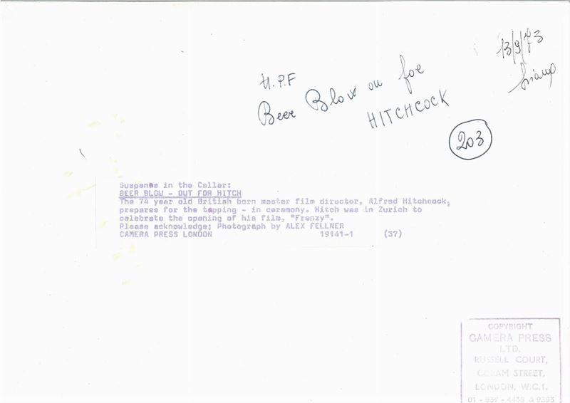 Alex Fellner Beer Blow - out for Hitch. Hitchcock, 13/09/1973