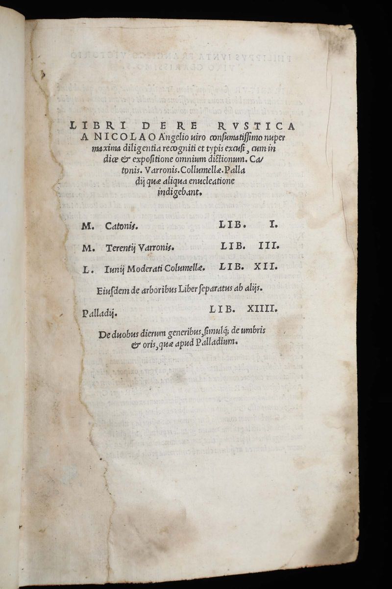 Catone-Terenzio-Varrone-Columella Libri de re rustica a Nicolao Angelio viro consumatissimo nuper maxima diligentia recogniti [..]