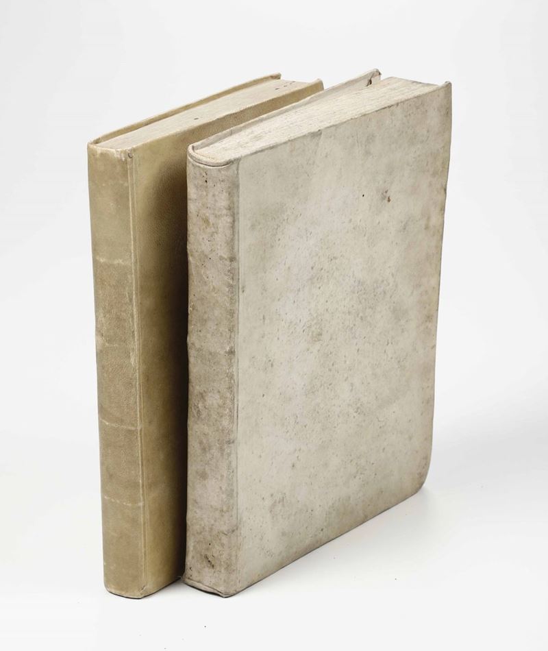 In-4°.Bella legatura in piena pergamena coeva.(Insieme nel lotto:) Francisco Lauretano - Promissio serenissimi venetiarum ducis serenissimo F. L. duce edita.Venetiis, Ex Typographia Ducali Pinelliana.. In-4°. Bella legatura coeva in piena pergamena.
