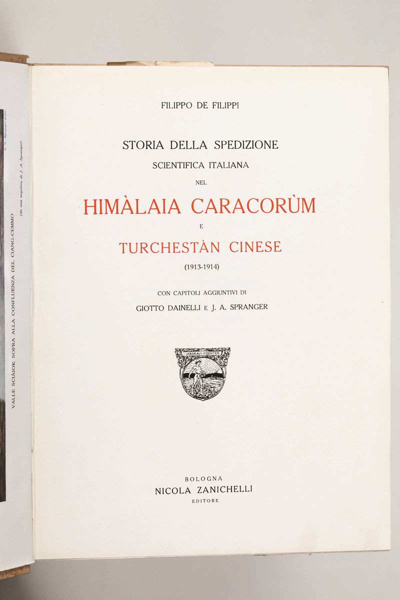 De Filippi, Filippo Storia della spedizione scientifica italiana nel Himàlaia Caracorùm e Turchestàn cinese. Bologna, Zanichelli, [..]