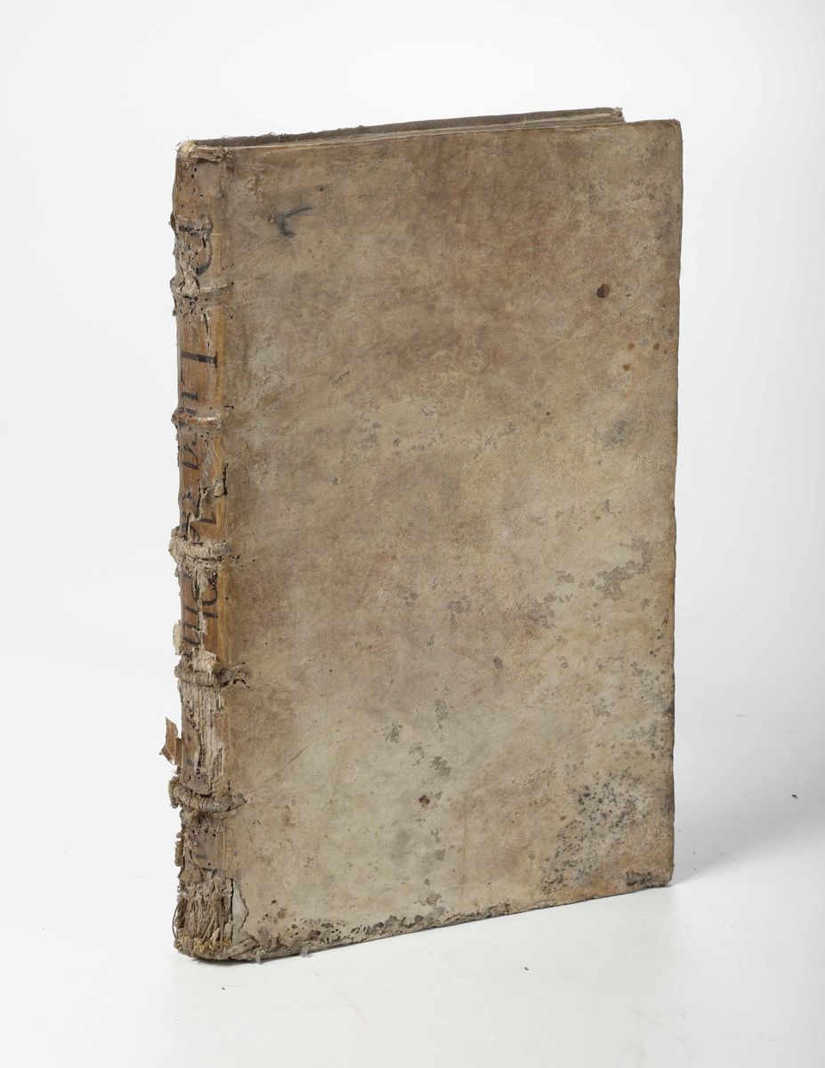 In-folio. Legatura coeva in pergamena rigida. Mancanze al dorso. Bruniture e gore.