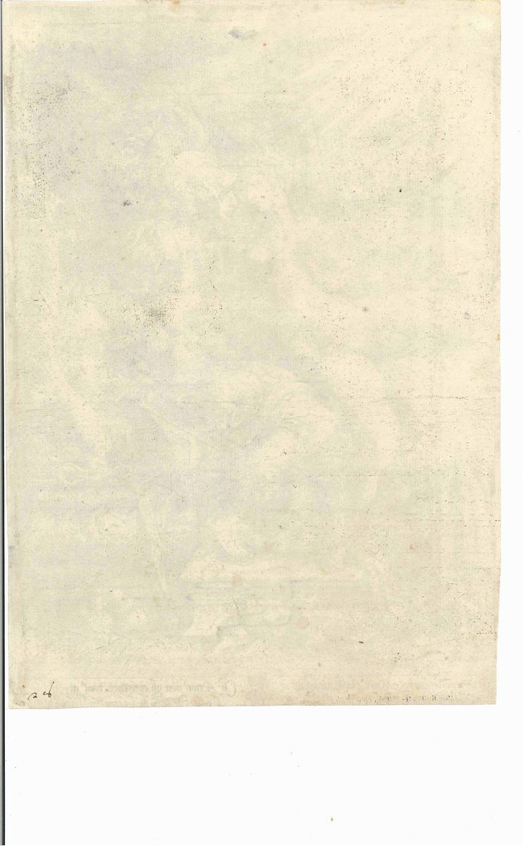 L'opera appare impressa su carta avente filigrana Mano databile alla prima metà del Cinquecento. Il soggetto piuttosto insolito è tratto da un disegno di Ippolito Andreasi, stretto collaboratore di Giulio Romano. Bibliografia: Bartsch, n. 21; Passavant, n. 21; Massari, Tra Mito e Allegoria, n. 98; Filigrana: variante Briquet, n. 11150